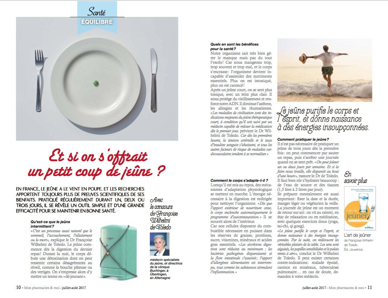 Se préparer mentalement est aussi important : fixer la date et la durée, manger léger ou végétarien la veille. La journée de jeûne est un moment de retour sur soi : on vit au ralenti, en état de relaxation ou en méditation, avec quelques exercices doux (yoga, taï chi, qi gong). "Le jeûne purifie le corps et l’esprit, et donne naissance à des énergies insoupçonnées. Par la suite, on redécouvre les véritables plaisirs de la table. Les sens sont aiguisés, les papilles sensibilisées et le palais remis à zéro", conclut le Dr Wilhemi de Toledo.